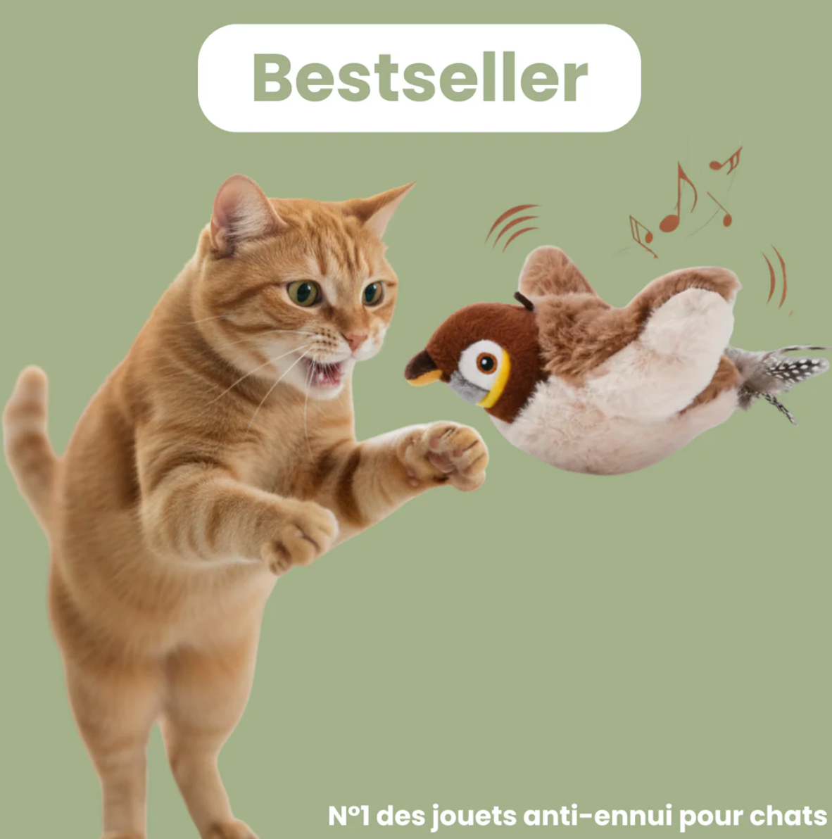 Dès qu’il est touché, il s’anime automatiquement : ses ailes battent et des sons naturels se déclenchent, reproduisant le comportement d’une véritable proie et éveillant instantanément l’instinct de chasse.